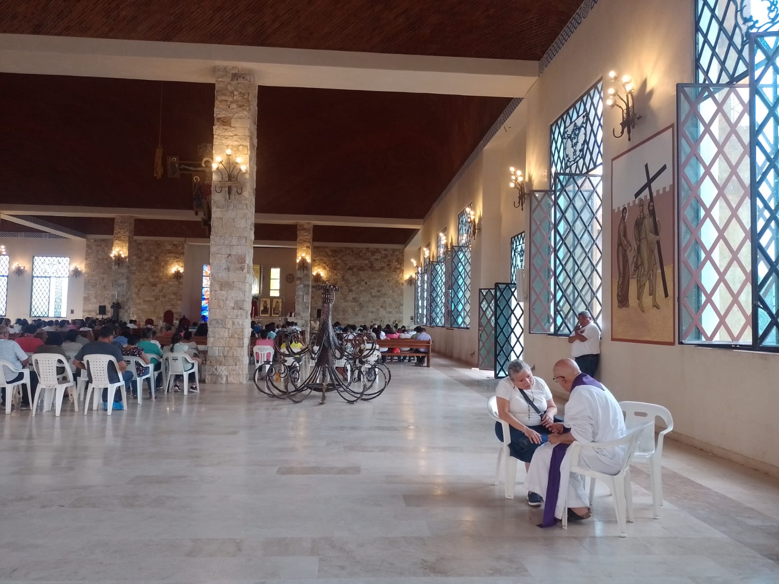 Durante las ceremonias los sacerdotes atienden confesiones y los religiosos brindan orientación espiritual a los peregrinos.