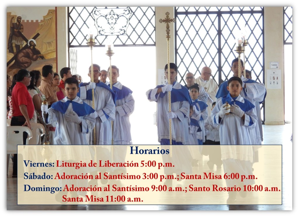Cada PRIMER VIERNES DE MES, luego de la Liturgia de Liberación, se celebra también la Santa Misa. Los horarios son siempre los mismos.