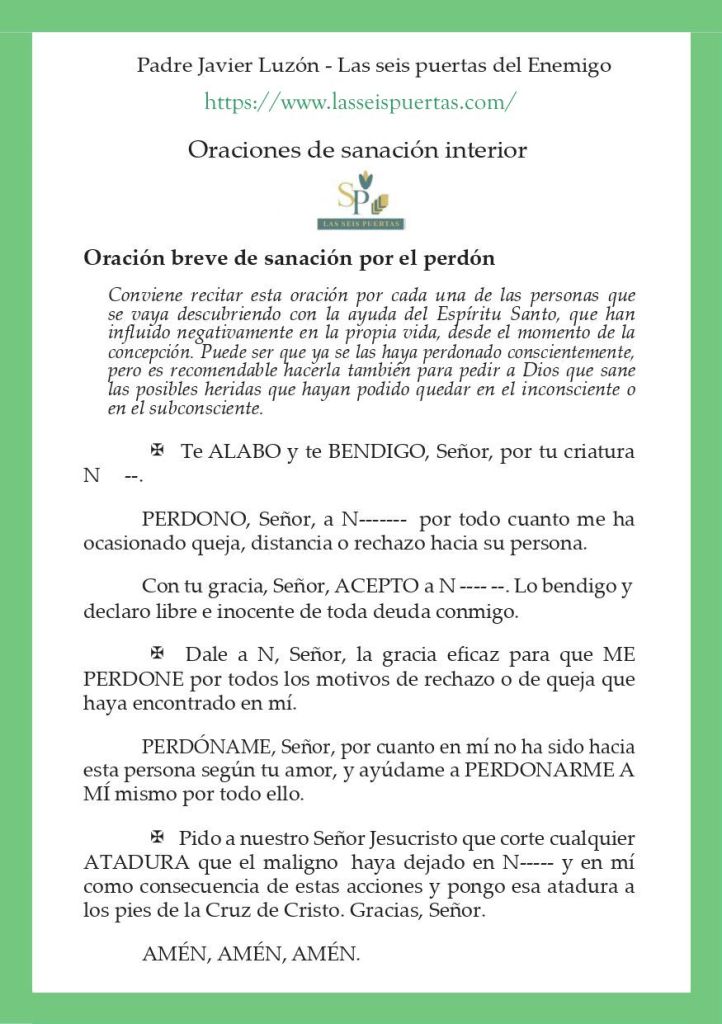 Una persona puede padecer la acción del maligno por causas externas, pero también por propia culpa: cuando no se renuncia al pecado, o cuando no se quieren romper ataduras como las del resentimiento y la falta de perdón. Por eso es importante orar como el mismo Señor nos enseñó: «Padre… perdónanos, como nosotros perdonamos a los que nos ofenden»
