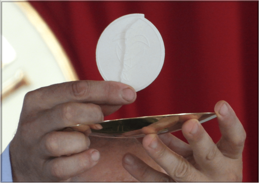 Los numerales 1374 al 1377 del Catecismo de la Iglesia Católica, nos enseñan que en la Sagrada Eucaristía está plena, total y realmente nuestro Señor Jesucristo: